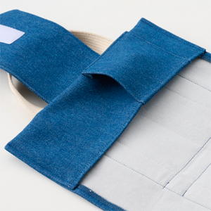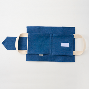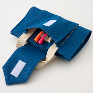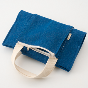 内ポケット2箇所、外ポケット2箇所、持ち手付。
